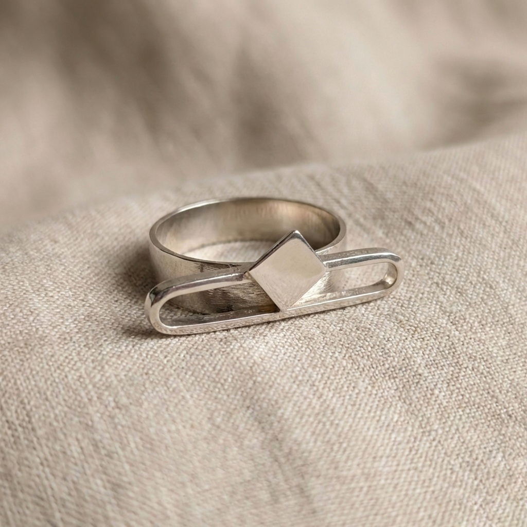 Anillo geométrico abierto cuadro con un y un detalle central cuadrado.