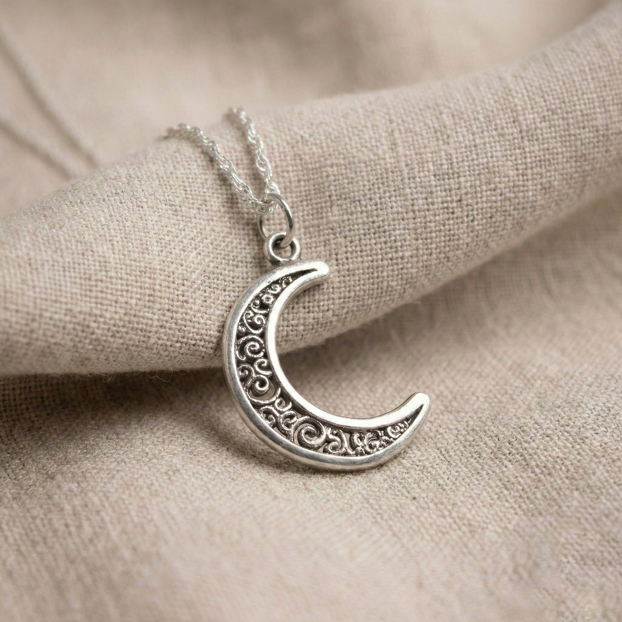 Dije media luna, calado y hecho a mano.
