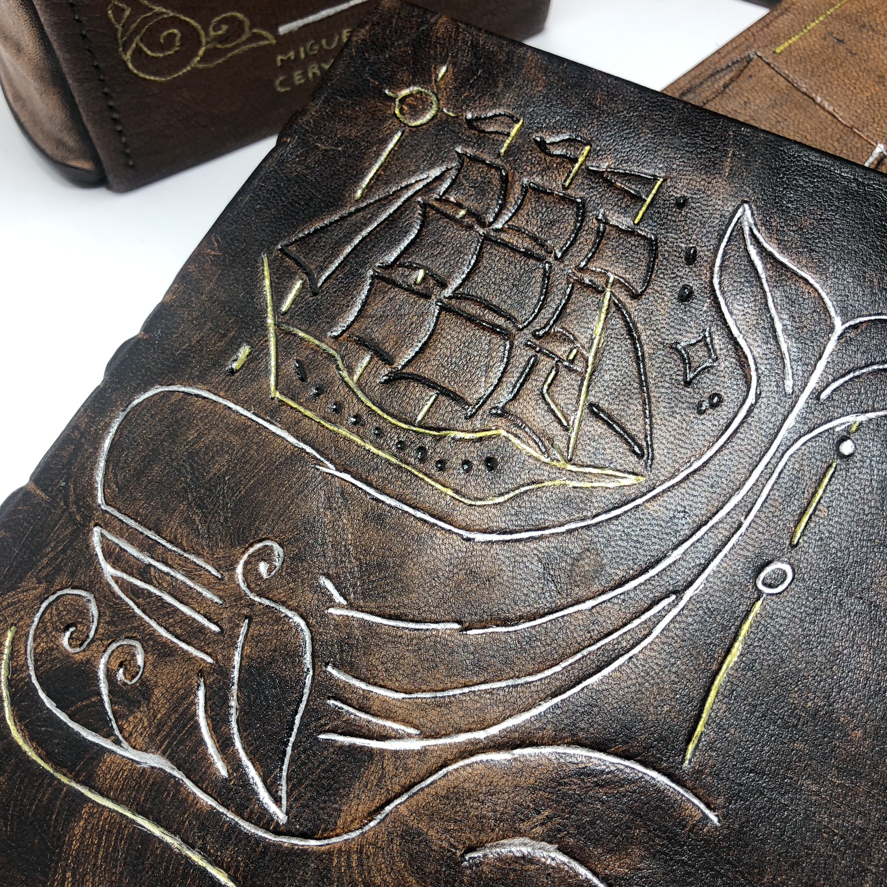 Usamos cuero genuino, papel libre de ácido, adhesivos de conservación, hilos de algodón y materiales especiales para garantizar la durabilidad y autenticidad de cada restauración.